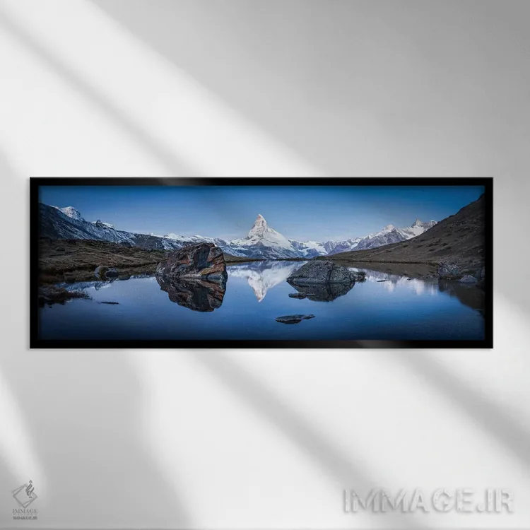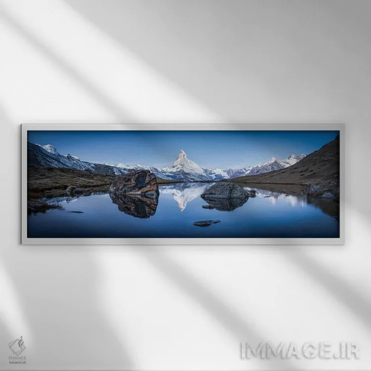 برای فضایی که میخواهید مرتبتر و حرفهایتر دیده شود، «نمای پانورامای دریاچه استلی و ماترهورن در زمستان» اثرِ «یان بکه» یک «نقطهٔ مکث» خوشسلیقه میسازد؛ برای دیوار بالای کنسول یا شومینه پیشنهاد میشود. روی دیوار، طبیعی و متعادل دیده میشود—بیاغراق و درست.
