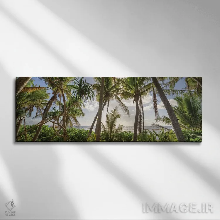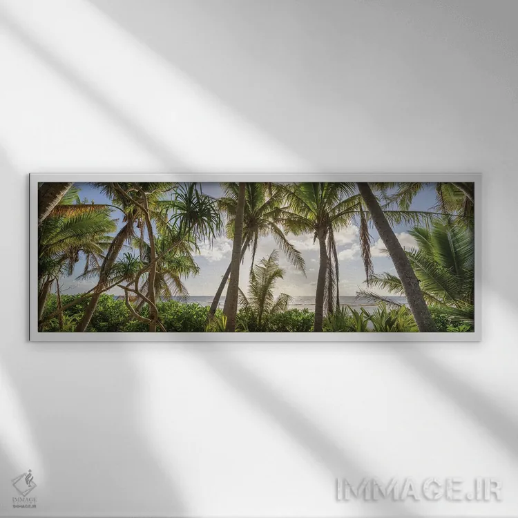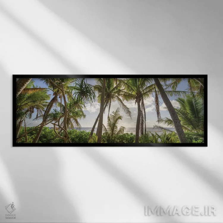 اگر دوست دارید دیوار روشنتر و آرامتر دیده شود، «پانورامای درختان نخل در غروب آفتاب» اثرِ «یان بکه» چیدمان را از خشکی بیرون میآورد، برای راهروهای مینیمال گزینهٔ مناسبیست. در کنار گیاهان آپارتمانی، هماهنگتر هم میشود.
