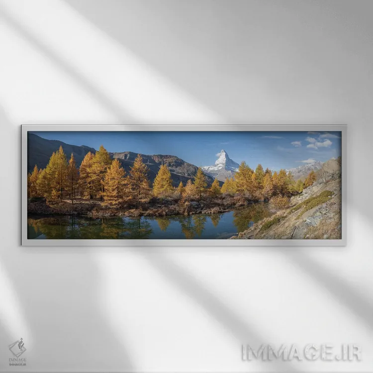 «Swiss Alps، Switzerland، پانورامای کوه ماترهورن و دریاچه گریندجیزه در فصل پاییز، آلپ سوئیس، سوئیس» اثرِ «یان بکه» از آن انتخابهاییست که به چیدمان، عمق و وقار میدهد؛ برای دیوارهای گالریوار و ترکیب چند اثر انتخابی عالی است. فضا را شلوغ نمیکند؛ فقط دقیقترش میکند.