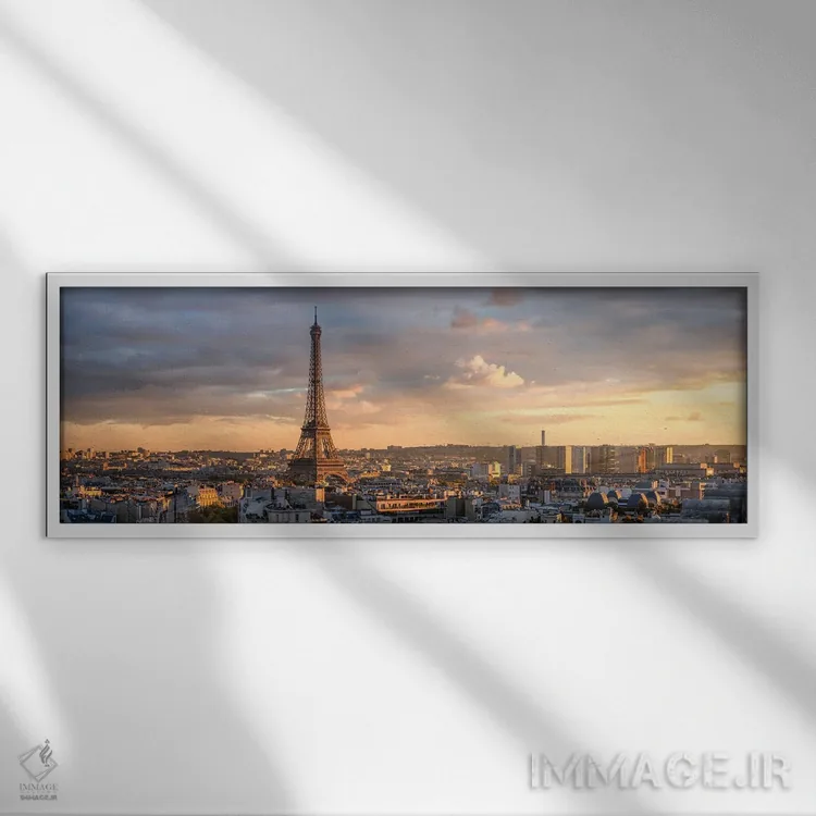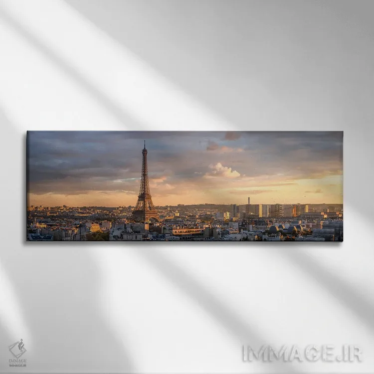 تابلو دکوراتیوِ «خط آسمان پاریس در غروب با منظره برج ایفل» با موضوعِ این اثر؛ یک یادآوری دلنشین از فضاهای شهری و سفر اثرِ «یان بکه».