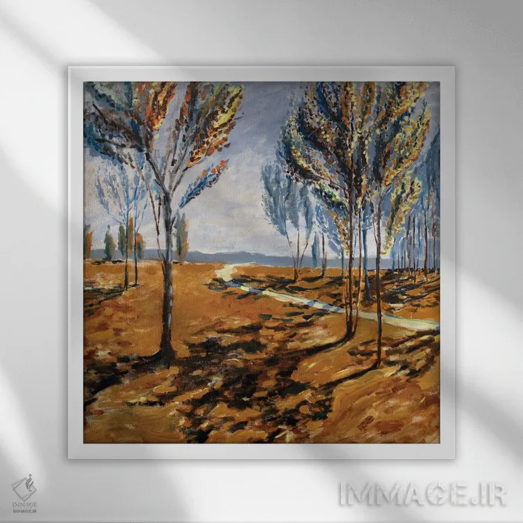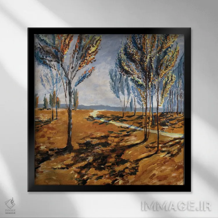 براساس پالت ترکیبی اثر، قاب تیک گرم (چوبی) پیشنهاد اول است و مشکی مات (فریم متوسط) مکمل. برای سفارشهای پروژهای با ابعاد و قابهای اختصاصی با ایماژ در تماس باشید.
