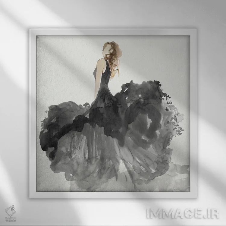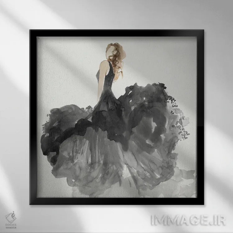 «زن با لباس مشکی II» اثرِ «ایمی ویلسون» با حالوهوای دکور معاصر و موضوعِ این اثر، برای نشیمنهای امروزی و چیدمانهای ساده انتخابی دقیق است.