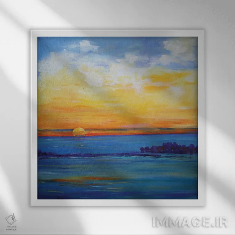 «غروب روز استقلال» اثرِ «الکسی فاین» در فضای دکور ساحلی، کنار پارچههای روشن و اکسسوریهای طبیعی (حصیر/چوب) عالی هماهنگ میشود.