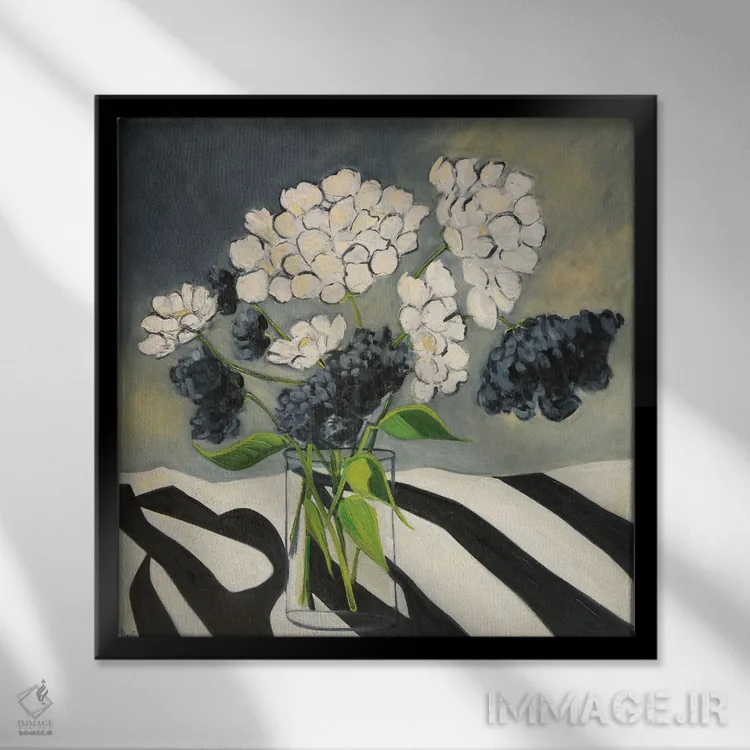 تابلو سیاه‌ها و سفیدها (عبارت فرانسوی) اثر الکسی فاین - نمای قاب‌دار مشکی