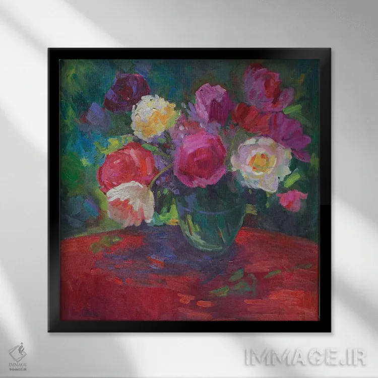 براساس پالت ترکیبی اثر، قاب تیک گرم (چوبی) پیشنهاد اول است و مشکی مات (فریم متوسط) مکمل. برای سفارشهای پروژهای با ابعاد و قابهای اختصاصی با ایماژ در تماس باشید.