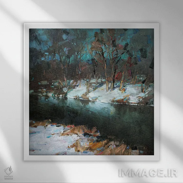 براساس پالت ترکیبی اثر، قاب بلوط روشن (چوبی) پیشنهاد اول است و استخوانی ملایم مکمل. برای سفارشهای پروژهای با ابعاد و قابهای اختصاصی با ایماژ در تماس باشید.