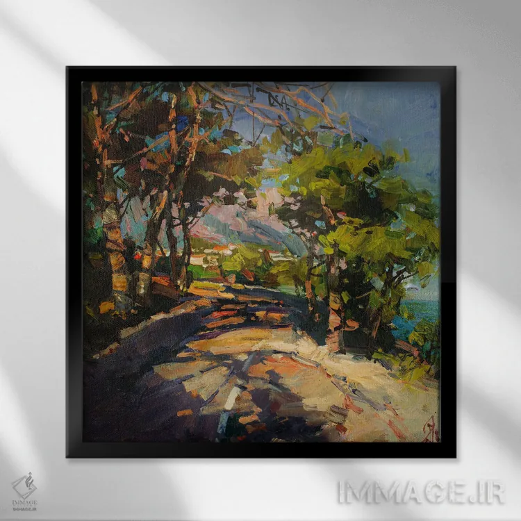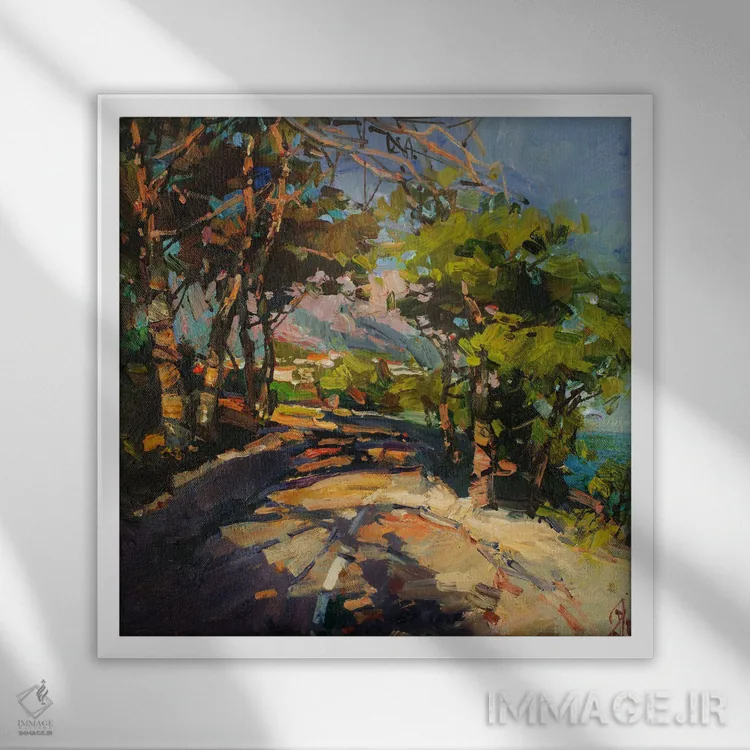 براساس پالت ترکیبی اثر، قاب تیک گرم (چوبی) پیشنهاد اول است و مشکی مات (فریم متوسط) مکمل. برای سفارشهای پروژهای با ابعاد و قابهای اختصاصی با ایماژ در تماس باشید.