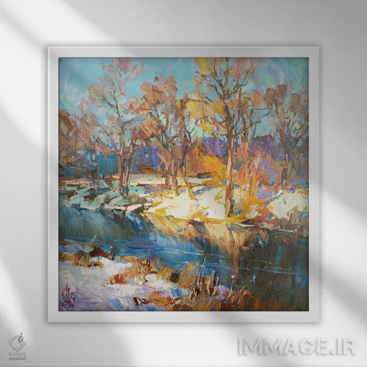 تابلو بهار در راه است اثر سرگئی الکساندروویچ پوزدیف - نمای قاب‌دار سفید