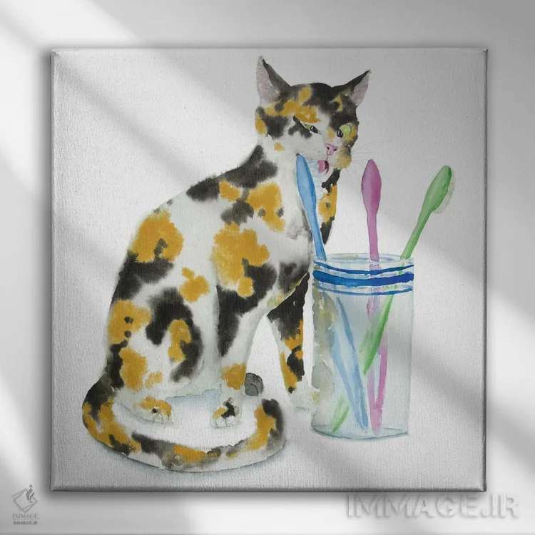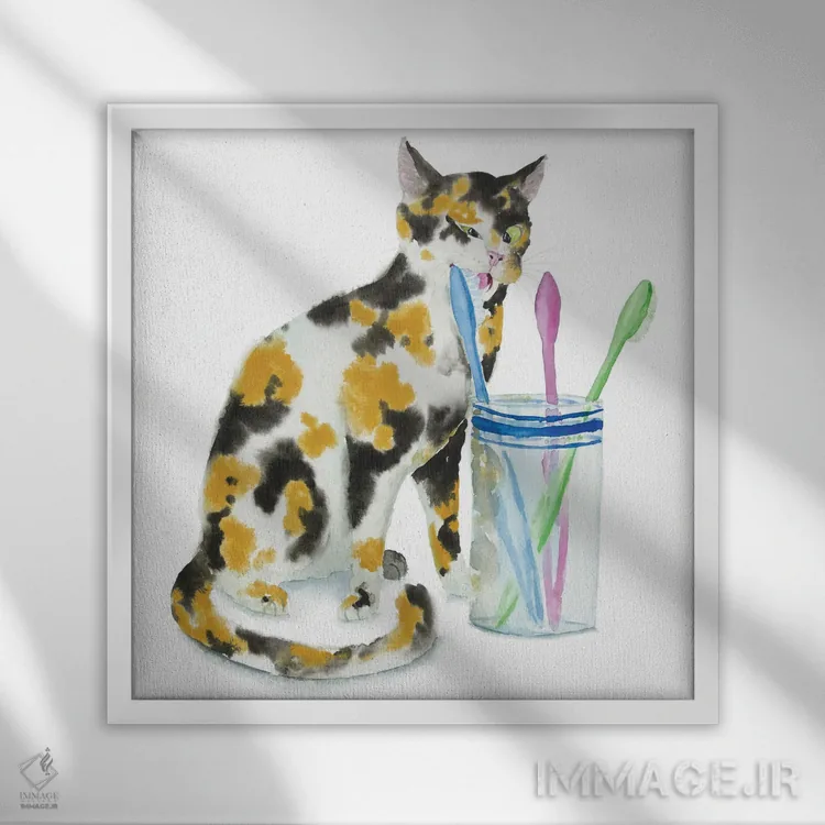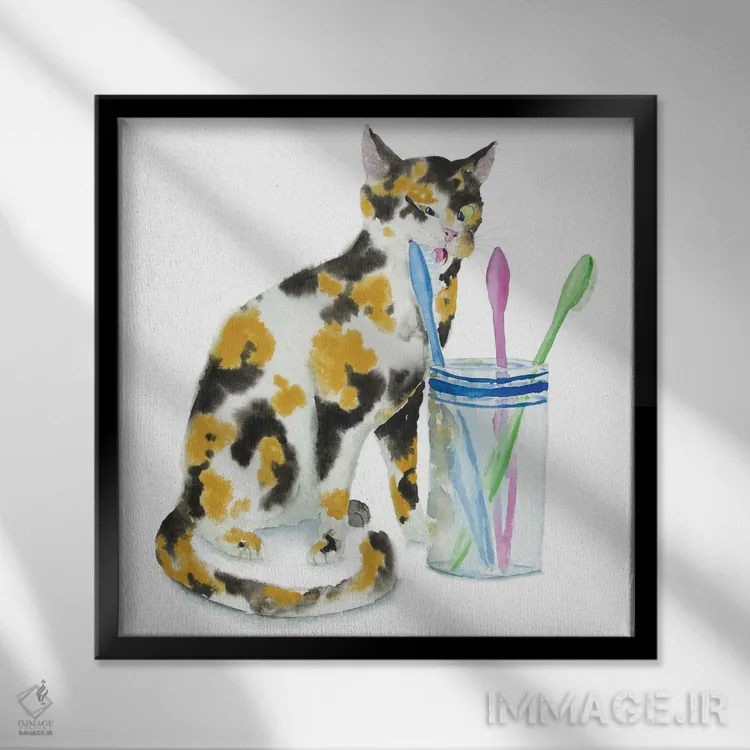 تابلو دکوراتیو گربه کالیکو و مسواک ها اثر آلکسی دیمیتریویچ شمیروف