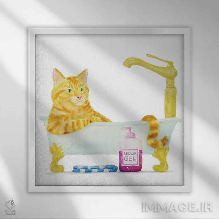 تابلو دکوراتیو گربه نارنجی در وان اثر آلکسی دیمیتریویچ شمیروف