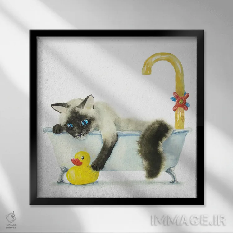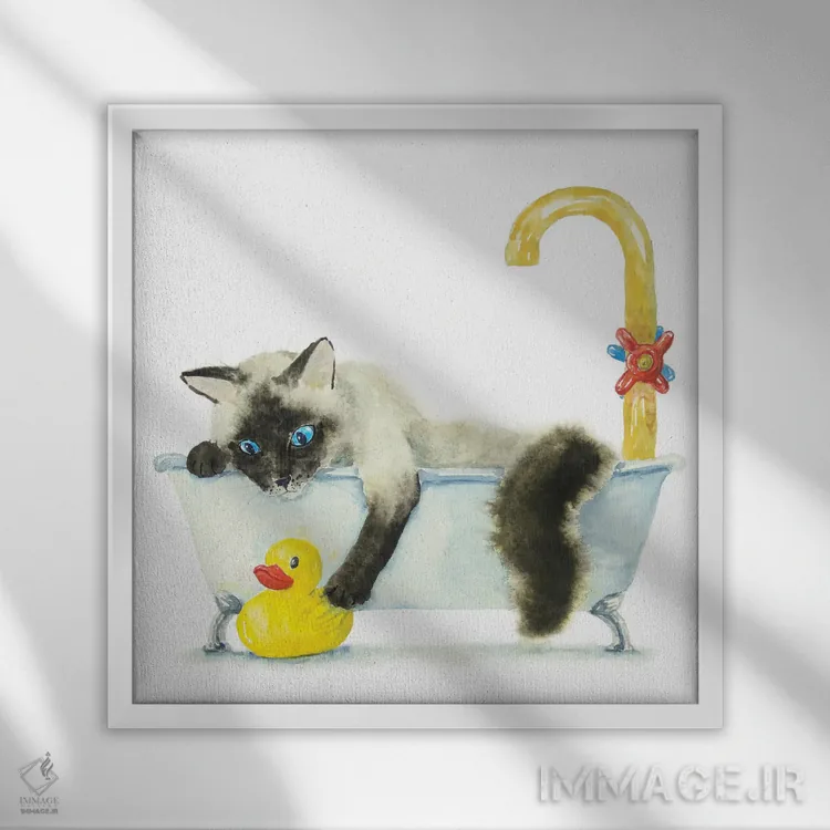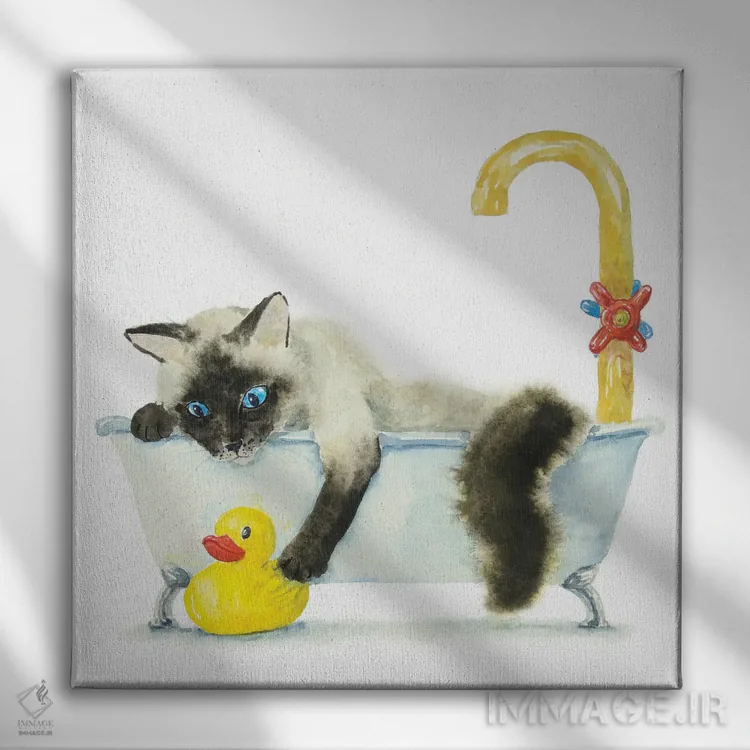 تابلو دکوراتیو گربه سیامی رگ دال در وان اثر آلکسی دیمیتریویچ شمیروف