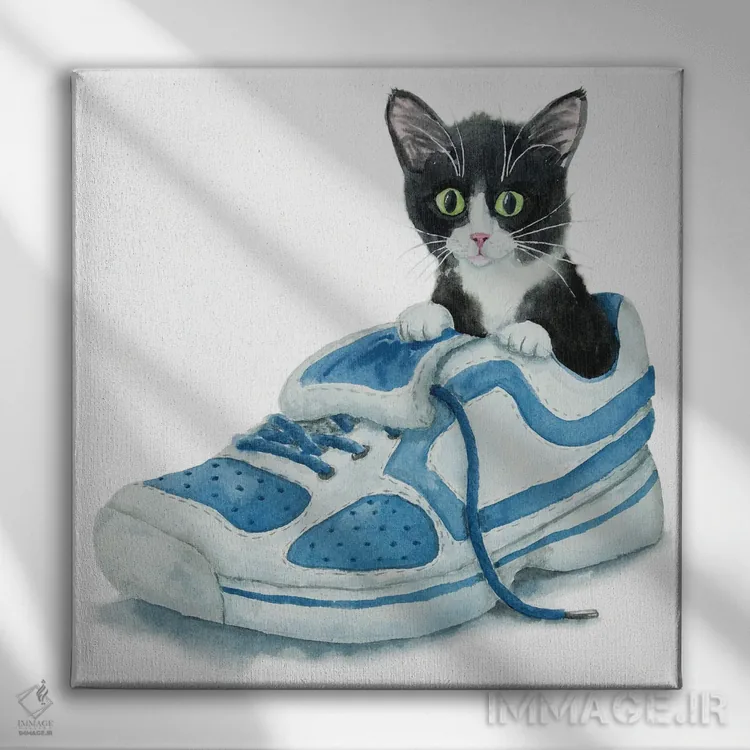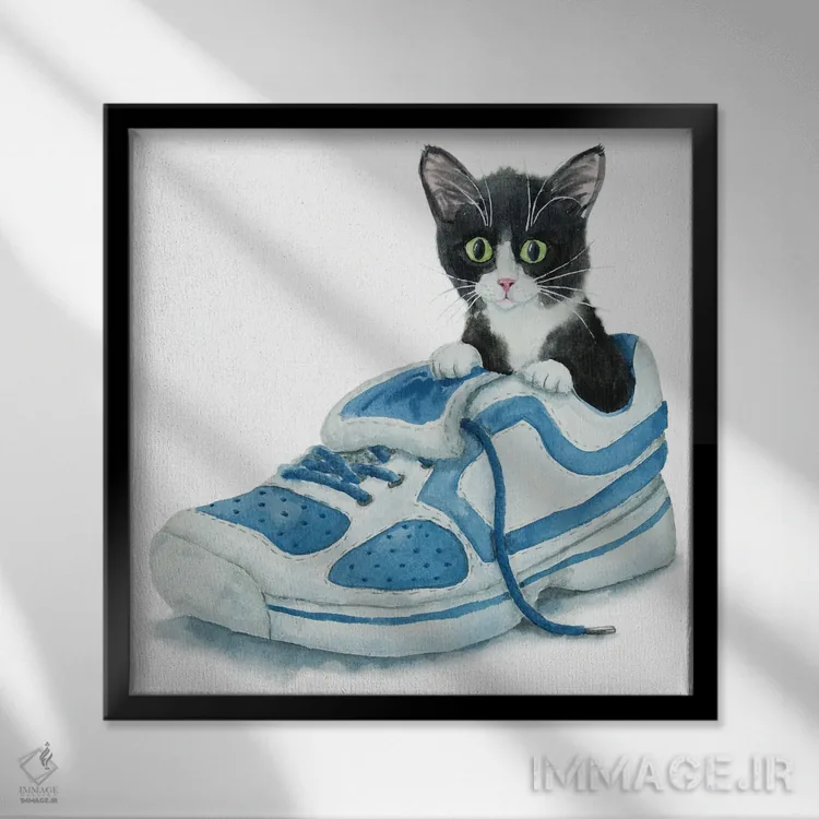 برای دیوارهای ساده، «بچهگربهٔ تاکسیدو در کفش» اثرِ «آلکسی دیمیتریویچ شمیروف» در کنار رنگهای خنثی، تضاد دلچسبی میسازد؛ برای دیوار کنار میز کار انتخابی خوشسلیقه است. در کنار گیاهان و نور طبیعی، جذابتر هم میشود.