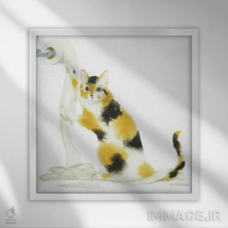 این اثر با عنوان «گربهٔ کالیکو و دستمال توالت» اثرِ «آلکسی دیمیتریویچ شمیروف» به فضا، گرمیِ ملایم اضافه میکند؛ برای اتاق کودک (بدون لحن کودکانه) انتخابی خوشسلیقه است. با قاب چوبی یا مشکی، حس مرتبتری پیدا میکند.