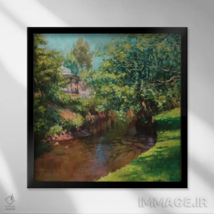 براساس پالت ترکیبی اثر، قاب تیک گرم (چوبی) پیشنهاد اول است و مشکی مات (فریم متوسط) مکمل. برای سفارشهای پروژهای با ابعاد و قابهای اختصاصی با ایماژ در تماس باشید.