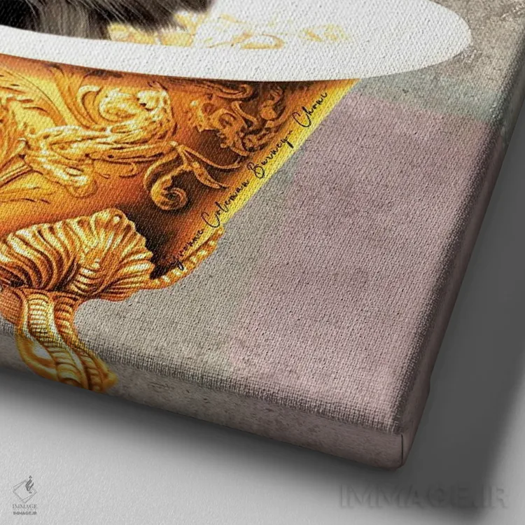 تابلو میمون شنل در وان (برند مد) اثر هنرِ چونی - نمای نزدیک بافت بوم