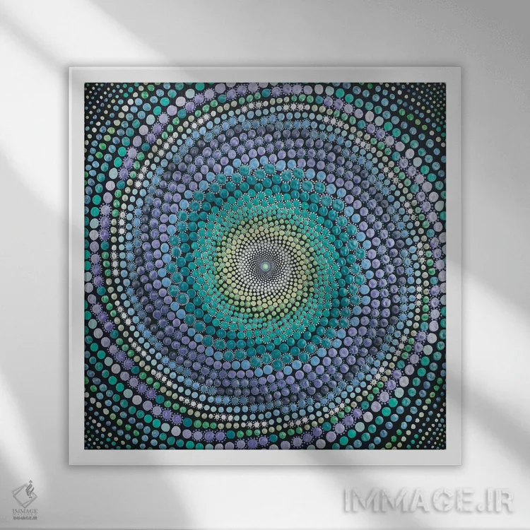 براساس پالت سرد اثر، قاب سفید مات (فریم باریک) پیشنهاد اول است و نقرهای برسخورده (متالیک) مکمل. برای سفارشهای پروژهای با ابعاد و قابهای اختصاصی با ایماژ در تماس باشید.