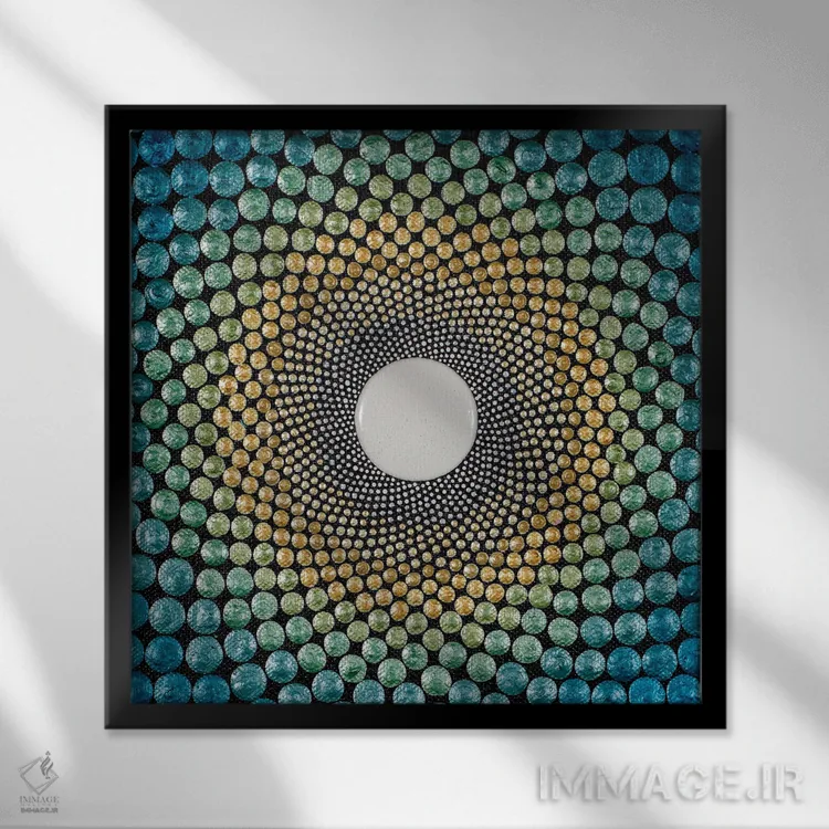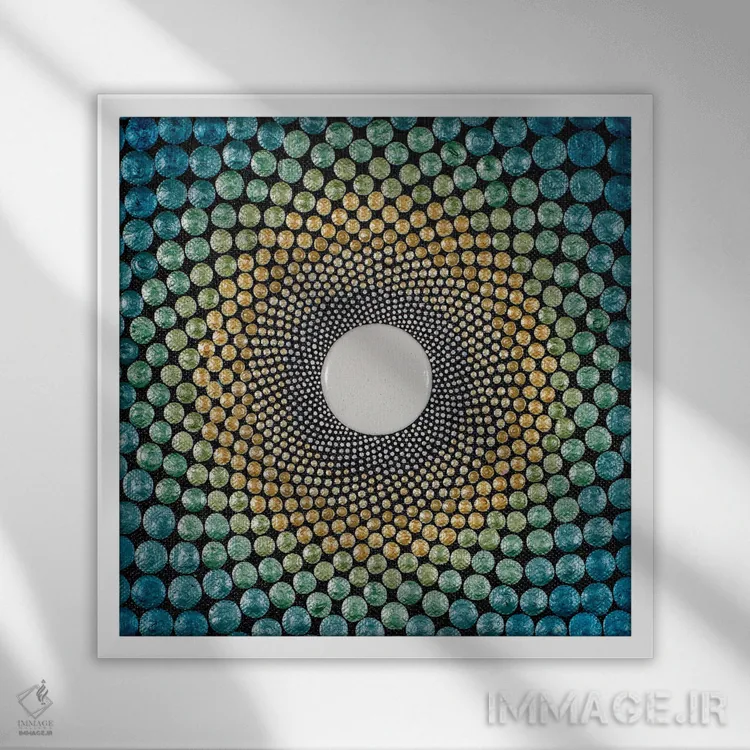 براساس پالت ترکیبی اثر، قاب بلوط روشن (چوبی) پیشنهاد اول است و استخوانی ملایم مکمل. برای سفارشهای پروژهای با ابعاد و قابهای اختصاصی با ایماژ در تماس باشید.