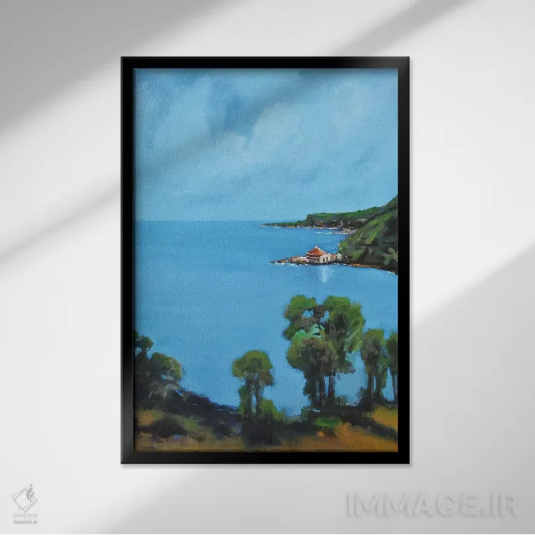براساس پالت ترکیبی اثر، قاب تیک گرم (چوبی) پیشنهاد اول است و مشکی مات (فریم متوسط) مکمل. برای سفارشهای پروژهای با ابعاد و قابهای اختصاصی با ایماژ در تماس باشید.