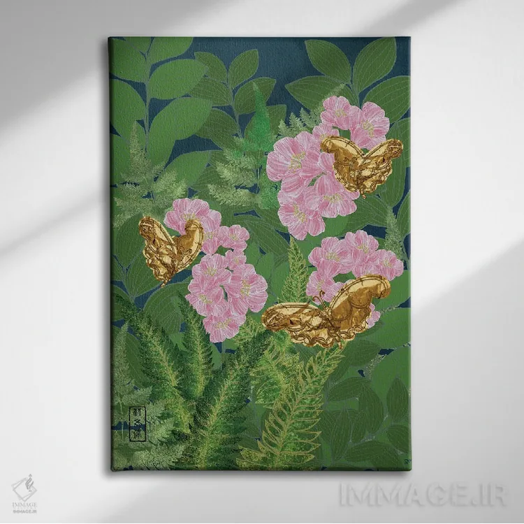 در «پروانههای طلایی چرخان» اثرِ «آنتونی ون لم»، گلها و گیاهان برای دیوارهای ساده، یک لطافتِ دقیق میسازد؛ برای نشیمنهای روشن انتخابی خوشسلیقه است. حضورش آرام است، اما بیاثر نیست.