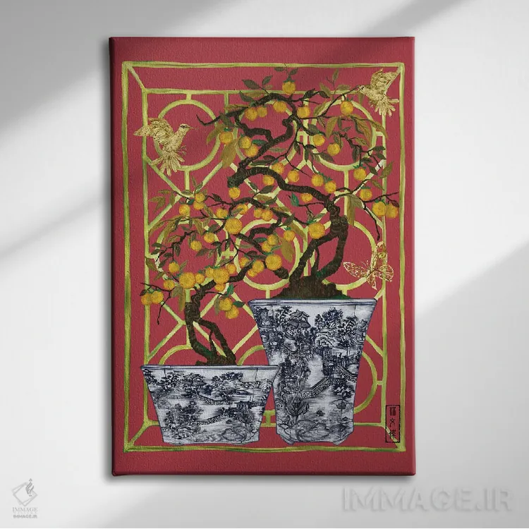 براساس پالت ترکیبی اثر، قاب تیک گرم (چوبی) پیشنهاد اول است و مشکی مات (فریم متوسط) مکمل. برای سفارشهای پروژهای با ابعاد و قابهای اختصاصی با ایماژ در تماس باشید.