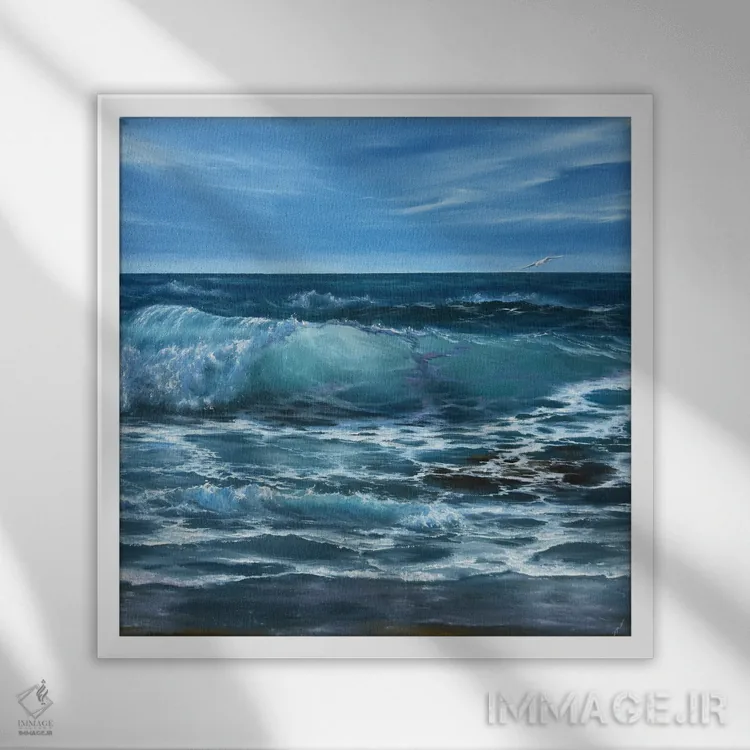 براساس پالت سرد اثر، قاب سفید مات (فریم باریک) پیشنهاد اول است و نقرهای برسخورده (متالیک) مکمل. برای سفارشهای پروژهای با ابعاد و قابهای اختصاصی با ایماژ در تماس باشید.