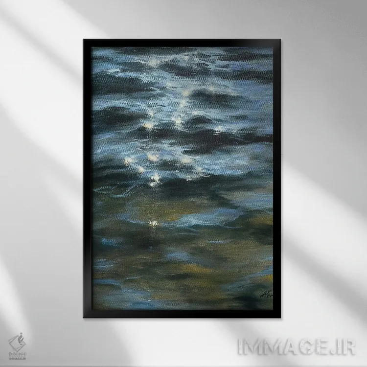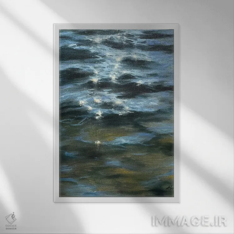 براساس پالت سرد اثر، قاب سفید مات (فریم باریک) پیشنهاد اول است و نقرهای برسخورده (متالیک) مکمل. برای سفارشهای پروژهای با ابعاد و قابهای اختصاصی با ایماژ در تماس باشید.