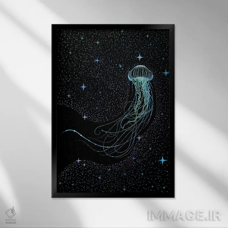 تابلو عروس دریایی ستاره‌ای رنگی اثر علیرضا چاکر - نمای قاب‌دار مشکی