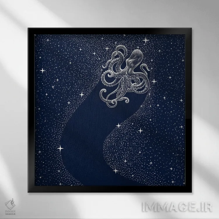تابلو هشت‌پای ستاره‌ای اثر علیرضا چاکر - نمای قاب‌دار مشکی