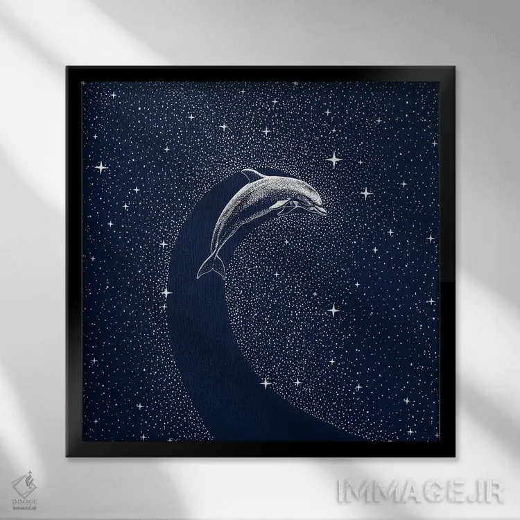 تابلو دلفین ستاره‌ای اثر علیرضا چاکر - نمای قاب‌دار مشکی