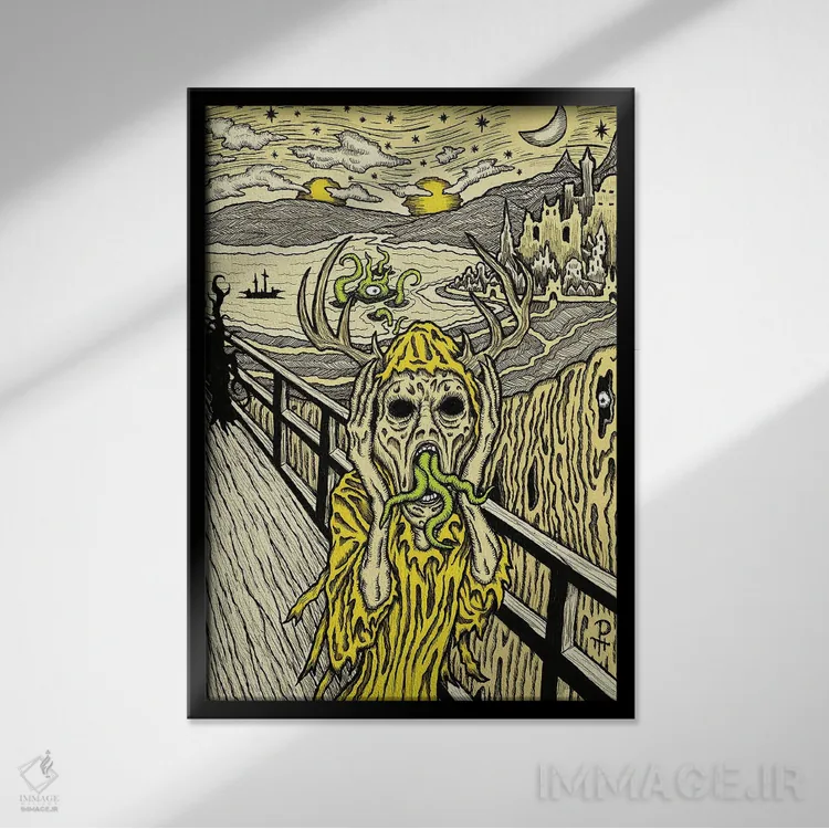 تابلو فریاد در زرد اثر آژمودای - نمای قاب‌دار مشکی