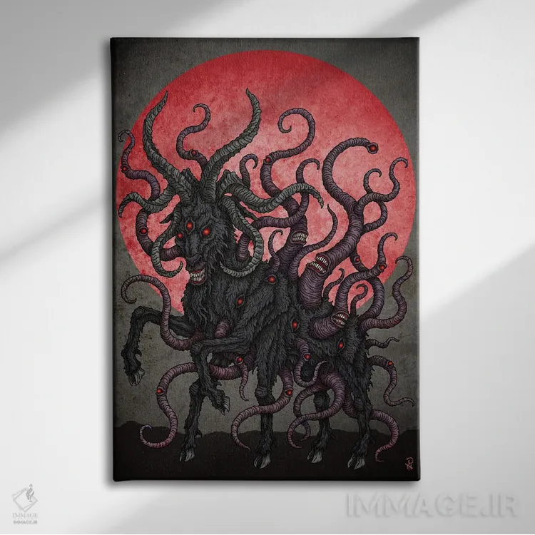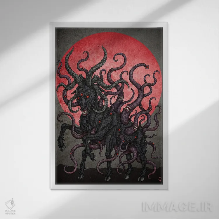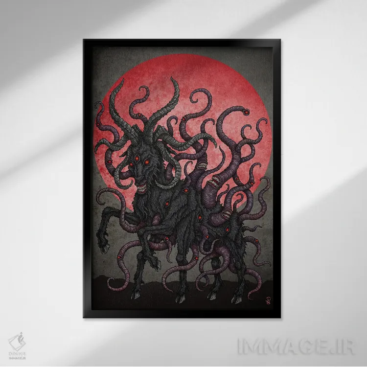 در «بز سیاه ماه سرخ» اثرِ «آژمودای»، حضور حیوانات فضا را صمیمیتر و دعوتکنندهتر نشان میدهد؛ برای فضاهای روستیک یا بوهو انتخابی خوشسلیقه است. به دیوار، قصه میدهد—اما قصهای آرام و شیک.