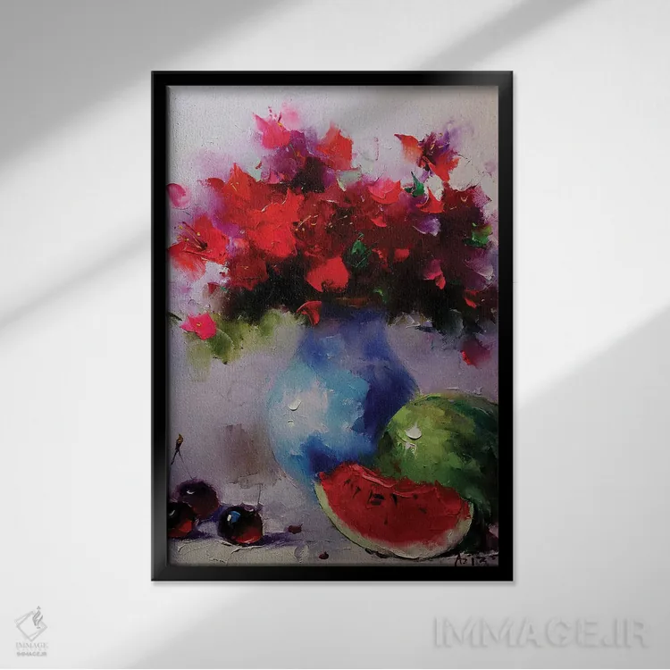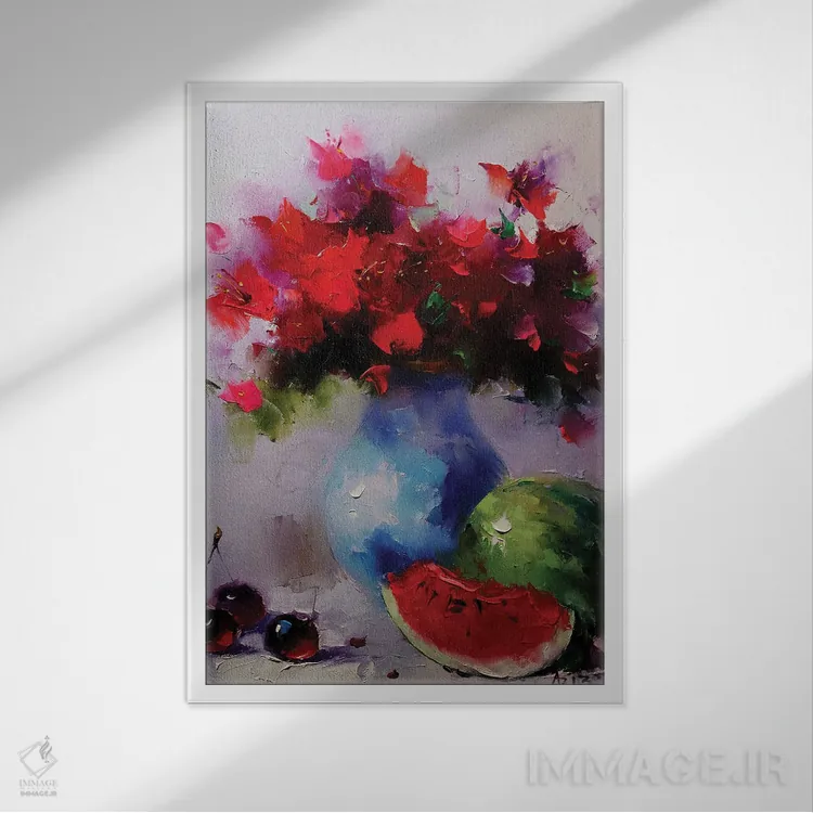 این تابلو با موضوعِ این دسته و اجرای هنری، یک انتخاب جذاب برای آشپزخانه یا فضای غذاخوری است اثرِ «عزیز سلیماناف».