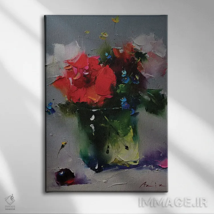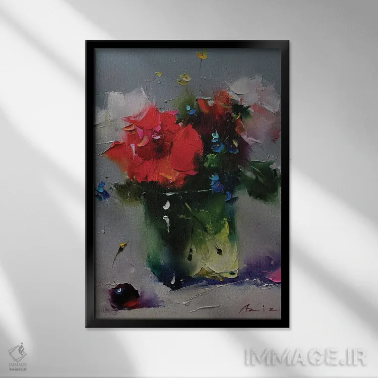 تابلو دستهگل قرمز با گیلاس اثر عزیز سلیماناف