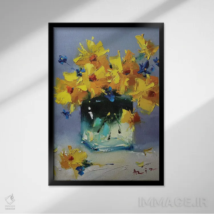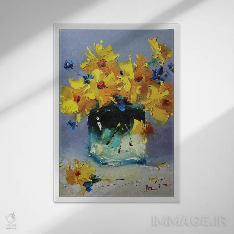 اگر به دکورهای طبیعی علاقه دارید، «دستهگل آفتابی» اثرِ «عزیز سلیماناف» حس فصل را آرام وارد فضا میکند، برای کنار میز آرایش یا کنسول گزینهٔ مناسبیست. برای دیوار گالری هم ترکیبپذیر و خوشنشین است.