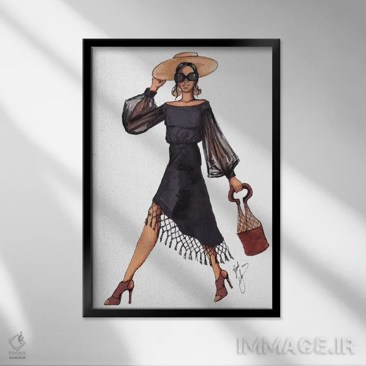 این تابلو با عنوان «بانویی با لباس سیاه» اثرِ «بروک اشلی»، کنار آینه و رختکن یا اتاق لباس عالی مینشیند.