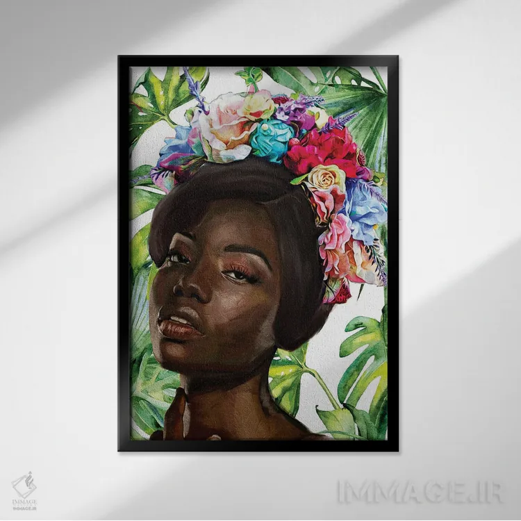 براساس پالت ترکیبی اثر، قاب تیک گرم (چوبی) پیشنهاد اول است و مشکی مات (فریم متوسط) مکمل.