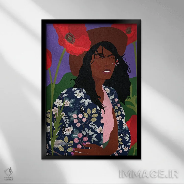 براساس پالت ترکیبی اثر، قاب تیک گرم (چوبی) پیشنهاد اول است و مشکی مات (فریم متوسط) مکمل.