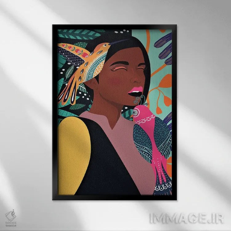 براساس پالت ترکیبی اثر، قاب تیک گرم (چوبی) پیشنهاد اول است و مشکی مات (فریم متوسط) مکمل.