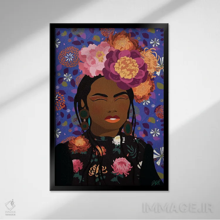 براساس پالت ترکیبی اثر، قاب تیک گرم (چوبی) پیشنهاد اول است و مشکی مات (فریم متوسط) مکمل.