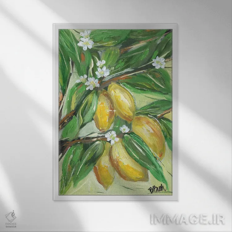 براساس پالت ترکیبی اثر، قاب تیک گرم (چوبی) پیشنهاد اول است و مشکی مات (فریم متوسط) مکمل. برای سفارشهای پروژهای با ابعاد و قابهای اختصاصی با ایماژ در تماس باشید.