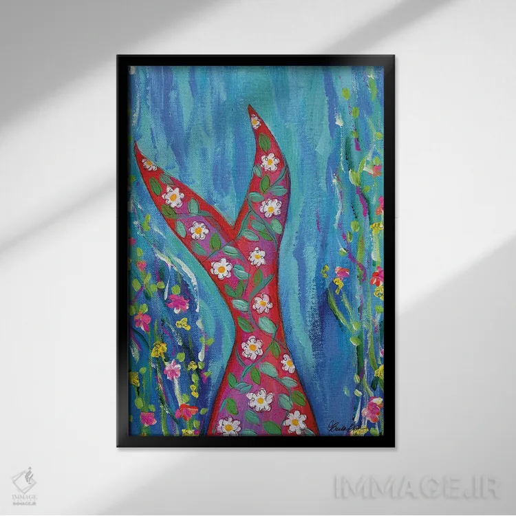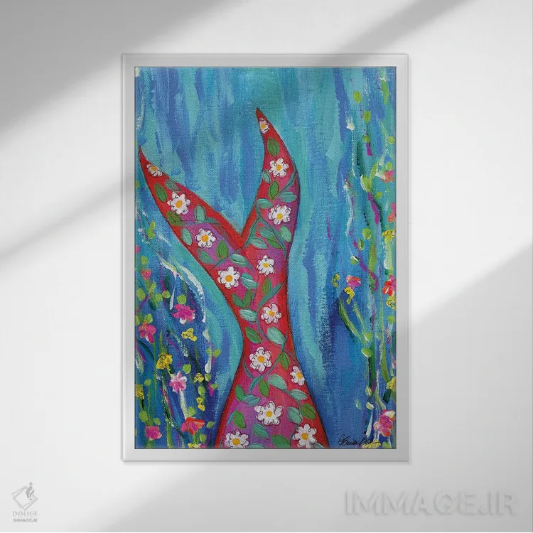 «بیایید پری دریایی باشیم» اثرِ «برندا بوش» در فضای دکور ساحلی، کنار پارچههای روشن و اکسسوریهای طبیعی (حصیر/چوب) عالی هماهنگ میشود.