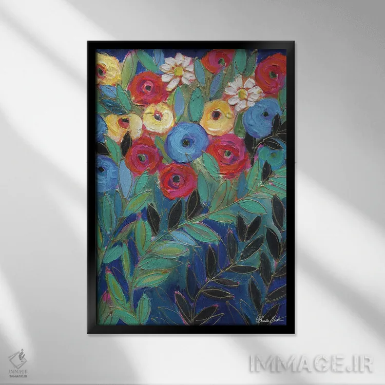 براساس پالت ترکیبی اثر، قاب تیک گرم (چوبی) پیشنهاد اول است و مشکی مات (فریم متوسط) مکمل. برای سفارشهای پروژهای با ابعاد و قابهای اختصاصی با ایماژ در تماس باشید.