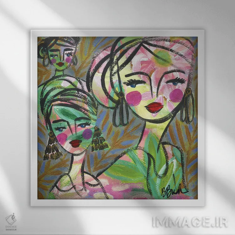 براساس پالت ترکیبی اثر، قاب تیک گرم (چوبی) پیشنهاد اول است و مشکی مات (فریم متوسط) مکمل. برای سفارشهای پروژهای با ابعاد و قابهای اختصاصی با ایماژ در تماس باشید.