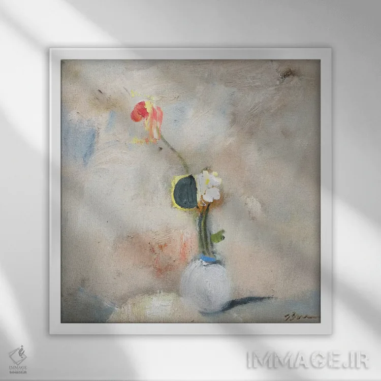 براساس پالت گرم اثر، قاب بلوط روشن (چوبی) پیشنهاد اول است و استخوانی ملایم مکمل. برای سفارشهای پروژهای با ابعاد و قابهای اختصاصی با ایماژ در تماس باشید.