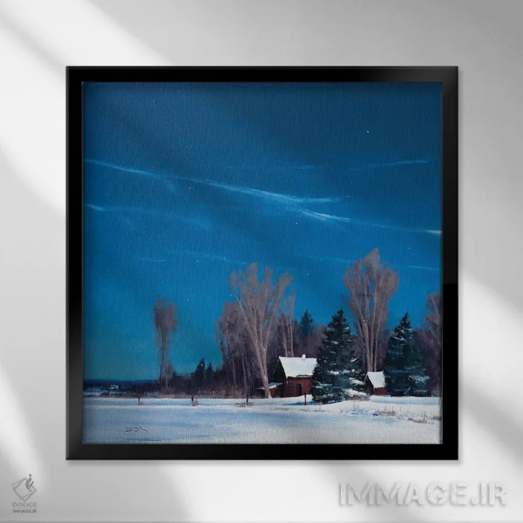 براساس پالت سرد اثر، قاب سفید مات (فریم باریک) پیشنهاد اول است و نقرهای برسخورده (متالیک) مکمل. برای سفارشهای پروژهای با ابعاد و قابهای اختصاصی با ایماژ در تماس باشید.