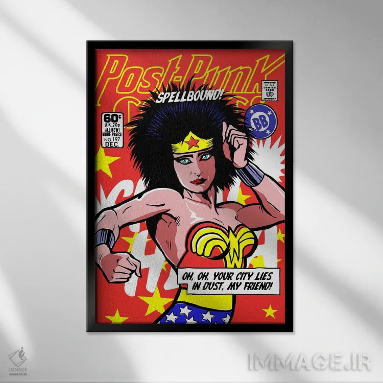 تابلو شگفتی پست-پانک (ژانر موسیقی) اثر بوچر بیلی (هنرمند برزیلی پوپ‌آرت) - نمای قاب‌دار مشکی