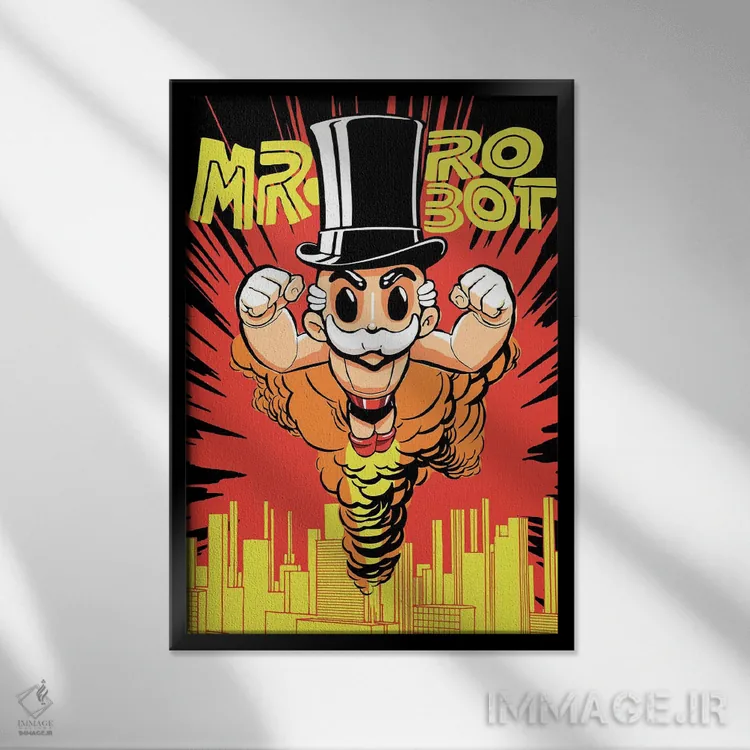 تابلو ربات‌ها اثر بوچر بیلی (هنرمند برزیلی پوپ‌آرت) - نمای قاب‌دار مشکی