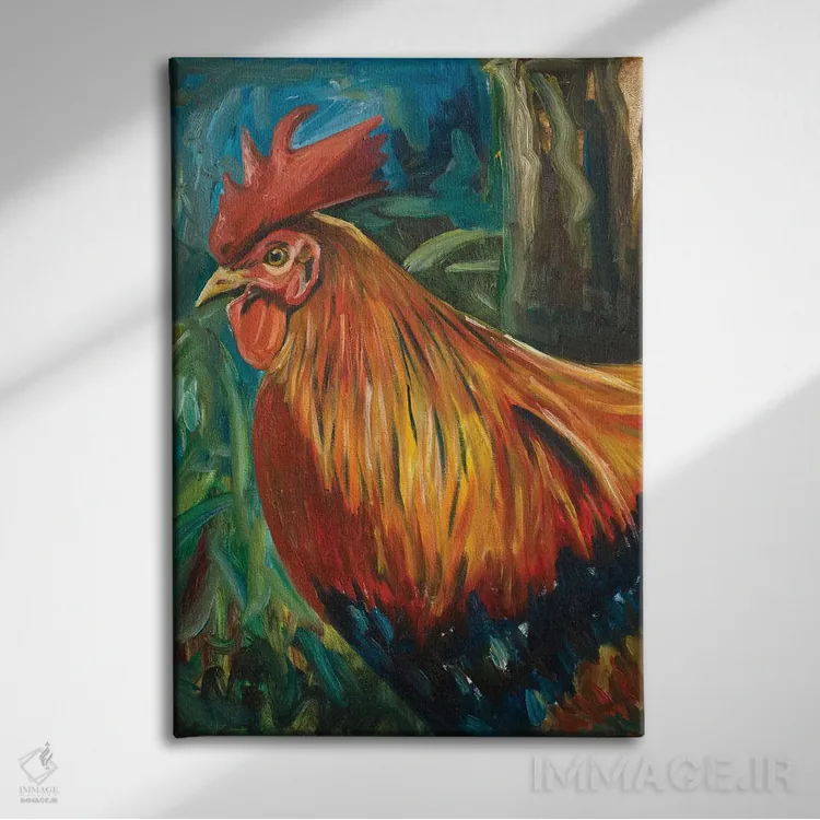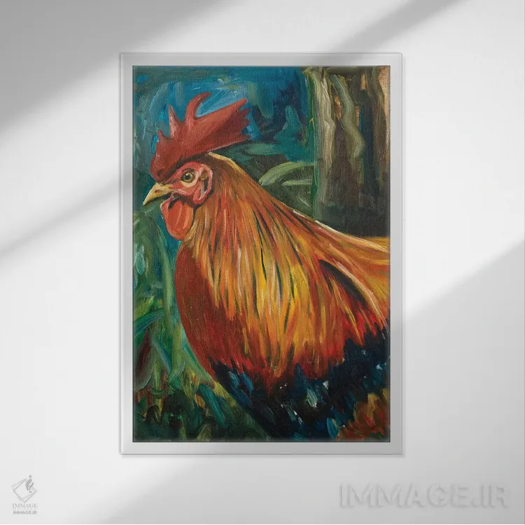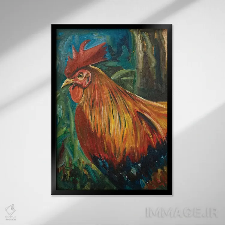 اگر به آثار حیوانات علاقه دارید، «خروس» اثرِ «اندی بوچمپ» مثل یک امضای بامزه اما متین عمل میکند، برای خانههایی با چوب و پارچههای گرم گزینهٔ مناسبیست. با قاب چوبی یا مشکی، حس مرتبتری پیدا میکند.