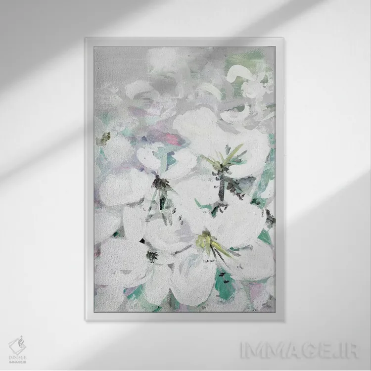 براساس پالت سرد اثر، قاب سفید مات (فریم باریک) پیشنهاد اول است و نقرهای برسخورده (متالیک) مکمل. برای سفارشهای پروژهای با ابعاد و قابهای اختصاصی با ایماژ در تماس باشید.