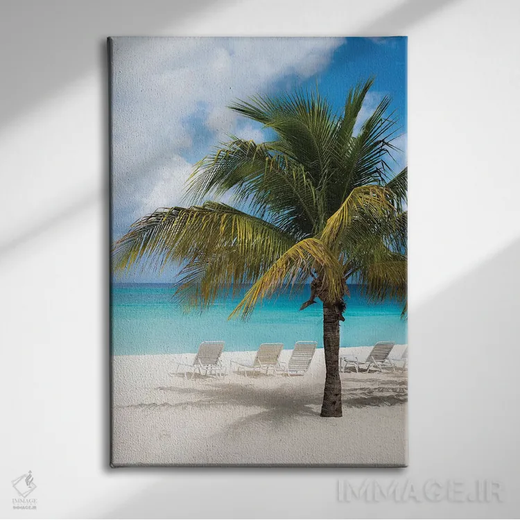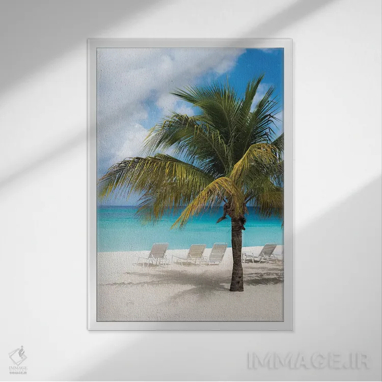 «ساحل آرامشبخش» اثرِ «عکاسی بیل کارسون» با حالوهوای این اثر و لحنِ دکور ساحلی، فضا را روشنتر و سبکتر نشان میدهد—مناسبِ نشیمنهای آفتابگیر.